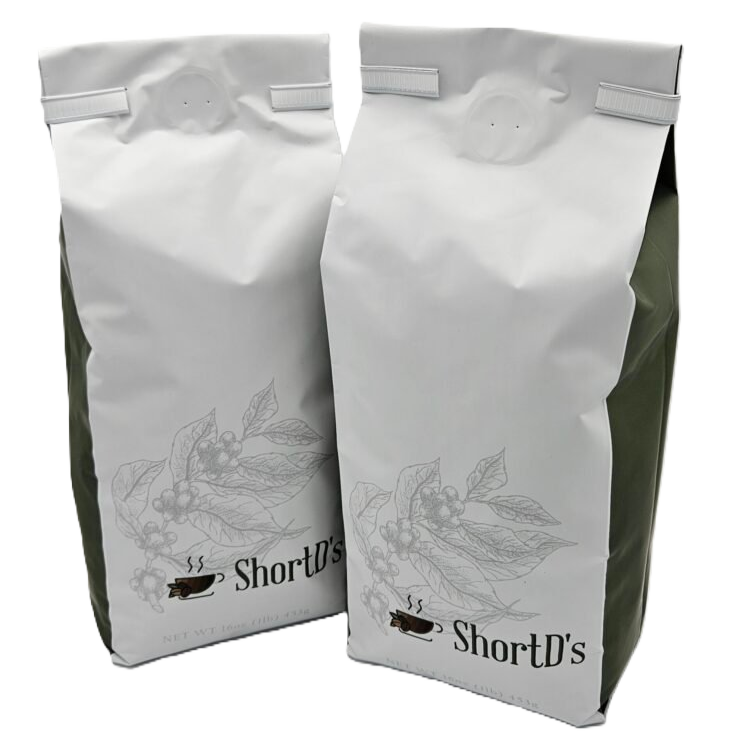 Packaged custom roasted small batch coffee, fresh roasted by ShortDs.