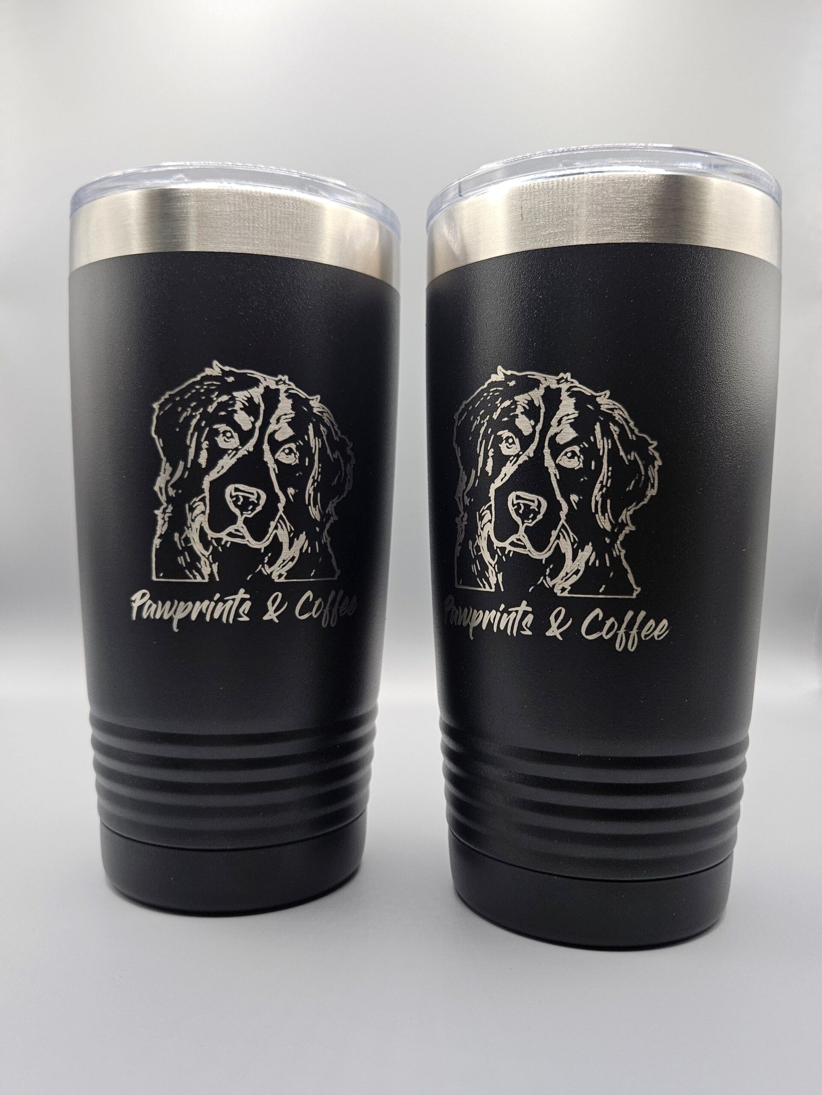 Keep your beverages at the perfect temperature with our sleek 20oz Pawprints & Coffee tumblers. These stylish black tumblers feature the P&C branding and are designed for coffee lovers on the go. With superior insulation that keeps hot drinks hot for up to 12 hours and cold drinks cold for up to 20 hours, you can enjoy your favorite beverages at the ideal temperature all day long. Perfect for your morning coffee, afternoon iced tea, or any beverage in between.